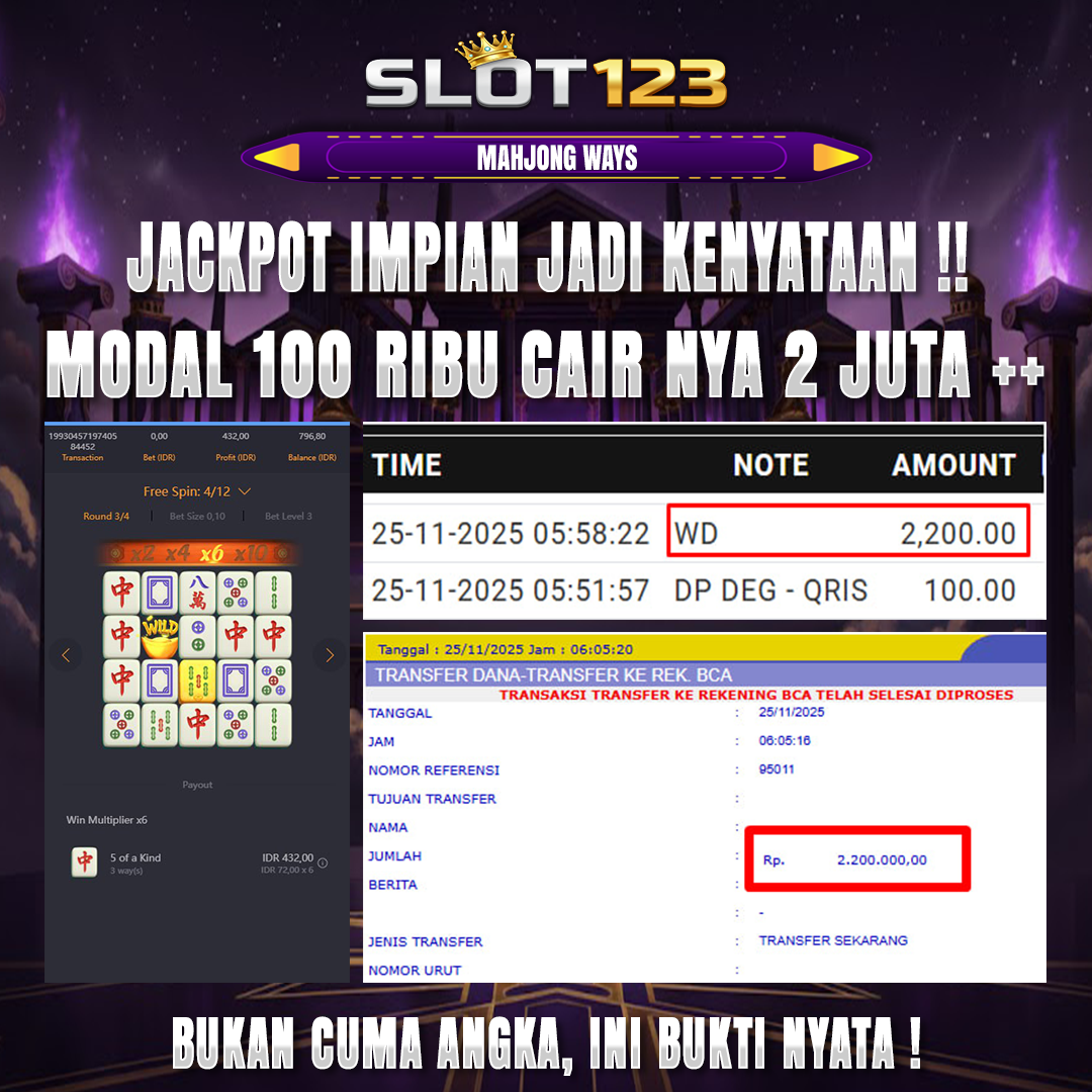 Cek sendiri SLOT123 tempat game jackpot dalam waktu singkat cuma di sini depo 100k bisa withdraw 2,2 juta Sudah di kasih bukti bukan janji yakin ga main?Rugi Dong!